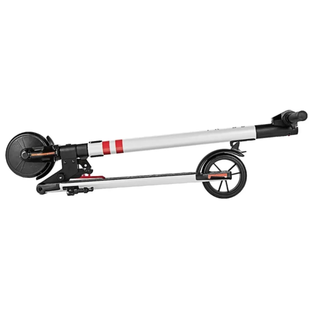 Электрический самокат Tribe Zulu White обеспечивает быстрое и комфортное передвижение по улицам города и отвечает современным тенденциям стремления к экологичности. Самокат способен развивать скорость до 25 км/час, что делает его достойной альтернативой привычному транспорту. Одного заряда батареи достаточно для преодоления 20 километров пути. При этом полная зарядка аккумулятора осуществляется всего за четыре часа. В случае дальних поездок вы можете легко спуститься с ним в метро - самокат складывается одним движением и принимает компактные размеры. На руле расположен электронный дисплей, на котором крупным шрифтом отображается информация о текущей скорости движения и уровне заряда батареи. Яркая подсветка позволяет следить за показаниями бортового компьютера даже в темное время суток. Система круиз-контроля автоматически поддерживает заданную скорость движения, делая управление самокатом ещё проще.