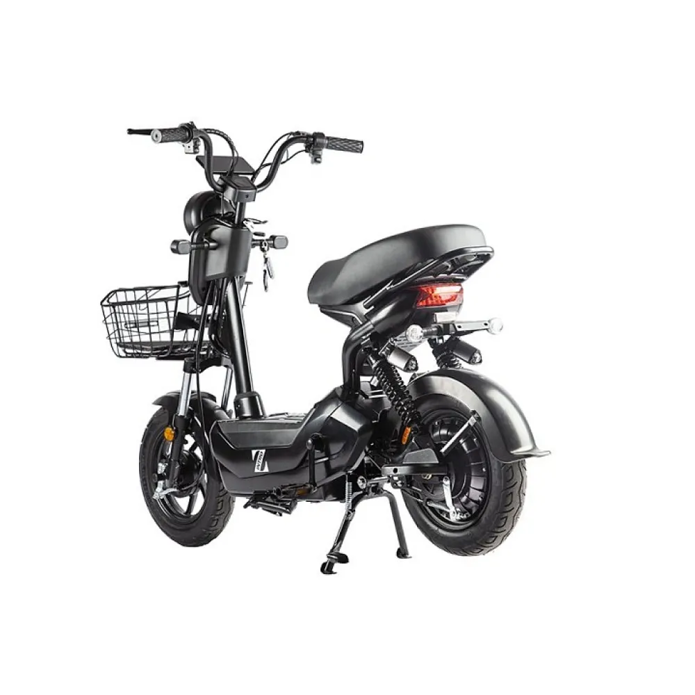 Мощность двигателя составляет 350 Вт, достаточная для развития скорости 25 км/час. Удобство и комфорт езды обеспечены мягким вместительным сиденьем, рассчитанным на двоих. Повторяя анатомические части тела материал изготовления и конструкционные особенности сиденья снижают нагрузку на позвоночник, снимают утомление.