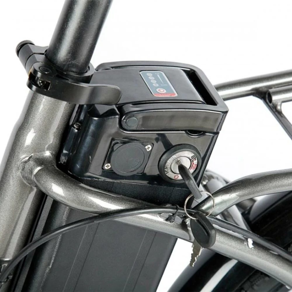 Алюминиевая конструкция рамы – складная, рассчитана на максимальную грузоподъемность до 110 кг. Благодаря современной системе трансформации техника в течение пары минут достигает минималистичных размеров. С такими характеристиками модель удобная как в путешествии, так и при хранении. При мощности электродвигателя 350 Вт и максимальном разгоне скорость составляет 30 км/час, а заявленный производителем запас хода – 60 км. Увеличить пробег можно посредством чередования электрического режима с педальным. Батарея размещена в недоступном защищенном месте за седлом, не мешает во время езды, быстро снимается и быстро заряжается (в течение 6 часов). Удобное регулируемое седло снижает нагрузку на спину, не вызывает усталости. Наличие подножки не вызывает проблем с парковкой. Контроль скоростных параметров и заряда батареи обеспечен информационным дисплеем. Для оформления заказа предлагаем сделать телефонный звонок нашему специалисту.