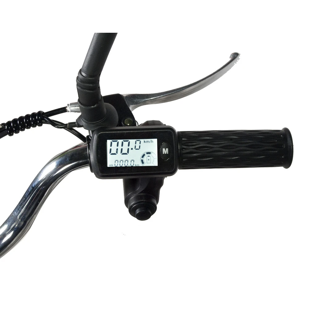 Электровелосипед оснащен надежным двигателем мощностью 500 Вт, позволяющим развивать скорость 50 км/час. Для обеспечения безопасности и контроля за показателями движения модель оборудована бортовым компьютером. Надежная батарея позволяет преодолевать расстояния на одном заряде 55 км. Вес модели небольшой (33 кг) дает возможность свободно маневрировать на дороге. Функция перехода на педальный режим предотвращает возникновение форс мажорных ситуаций в поездках. Для идеального сцепления с дорогой любого покрытия электровелосипед имеет широкие колеса с мощным протектором.