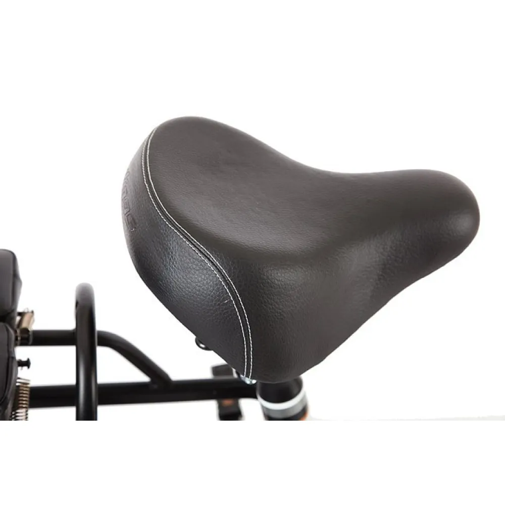 При весе транспортного средства в 35 кг максимальная грузоподъемность составляет 130 кг. Обратите внимание на сидение. Мягкий материал изготовления, удобная спинка не вызывают утомления, минимизируют давление на позвоночный столб, делают езду комфортной.