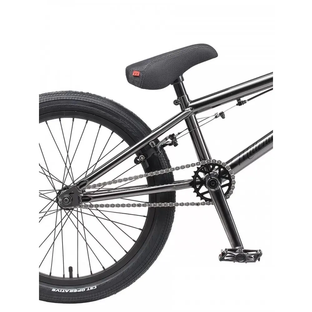 На BMX установлена 3-х компонентная система из хроммолибдена с педалями из алюминия. Главная звезда алюминиевая, представлена 25 зубьями. Остальные комплектующие велика – стальные. Рама имеет размер 20,5. Указанное соотношение материала изготовления позволило минимизировать массу велосипеда. Вес техники составляет 11,5 кг.